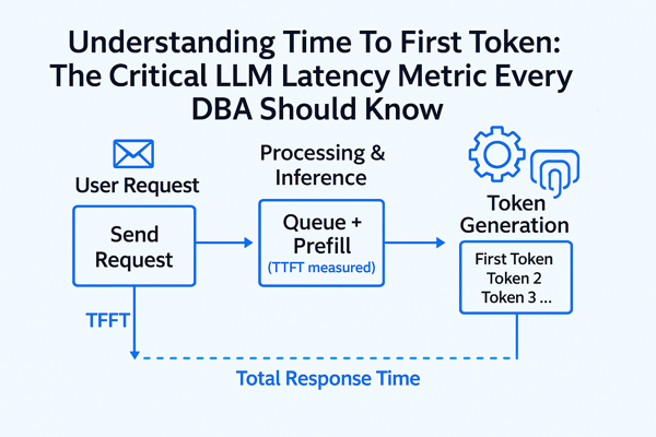 As database administrators, we’ve spent years optimizing query response times, tuning buffer caches, and obsessing over execution plans. Now, with large language models becoming integral to enterprise applications, there’s a new performance metric demanding our attention: Time To First Token (TTFT).